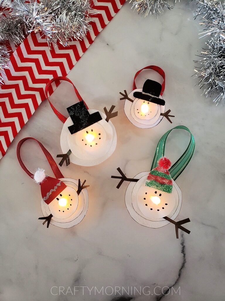 Kids, pre-K to grade 5, make a melted snowman ornament complete with tea light to decorate your tree.
